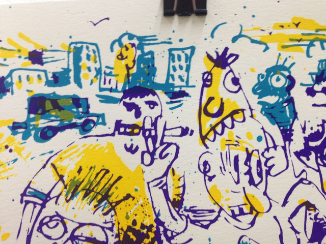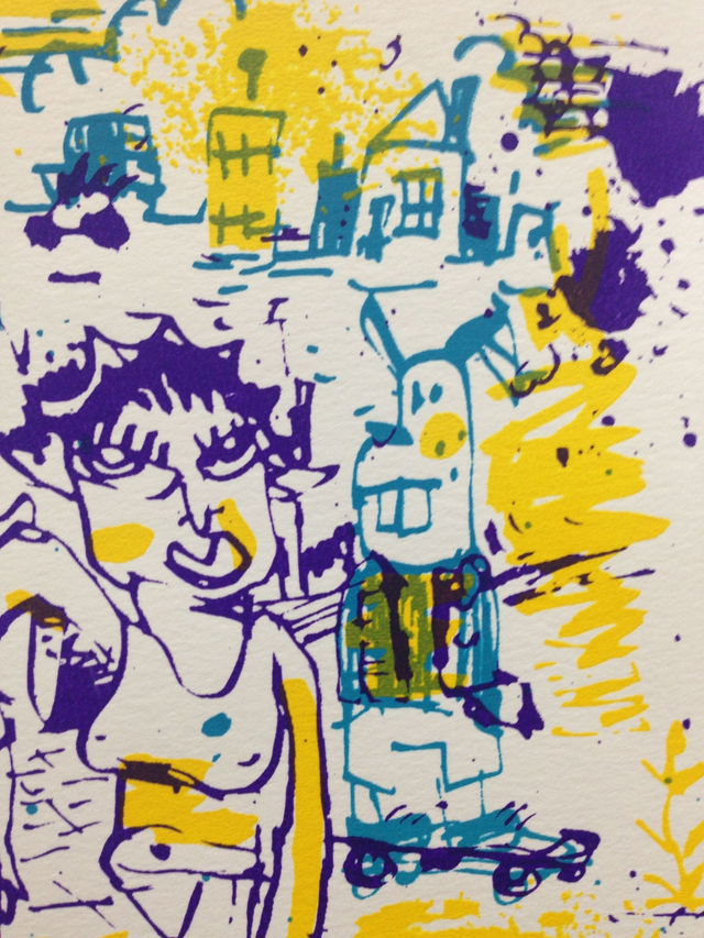 dreifarbiger Siebdruck nach handgezeichneten Vorlagen, 21 x 30 cm